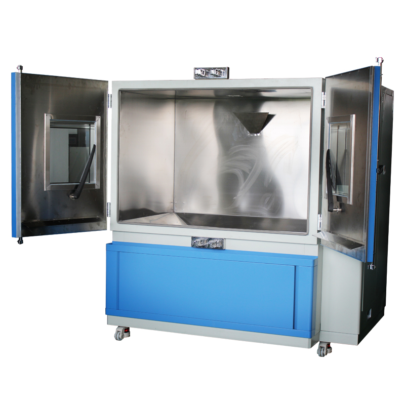 大型試驗箱適用于檢測產品的外殼密封性能,主要用于外殼防護等級標準中規(guī)定的IP5X和IP6X兩個等級的試驗。